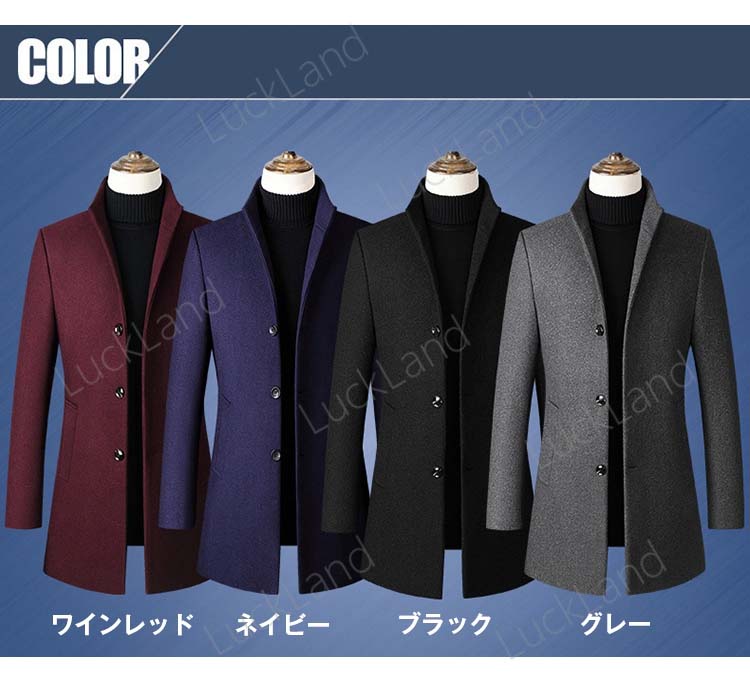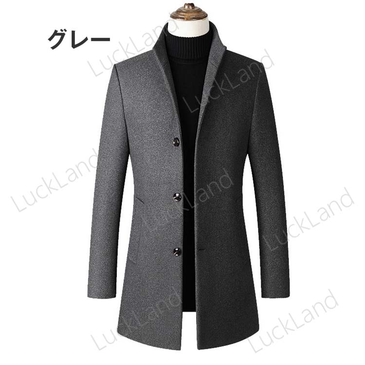 チェスターコート メンズ 細身 スタンドカラー テーラードジャケット 中綿 ツイード コート ウールコート ロングコート ロング丈 大きいサイズ 無地 ジャケット スリムコート メンズ