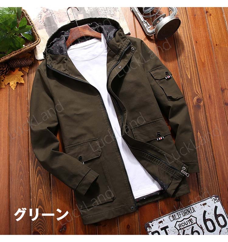 メンズ ミリタリージャケット トレンチコート フード付き ショット丈 ウインドブレーカー アウター アウトドア マウンテン パーカー 冬服 メンズファッション 秋服 防風 防寒 通勤