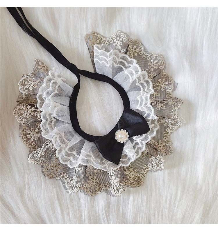 ペット用品 首輪 犬 猫 グッズ リボン おしゃれ 安全 猫首輪 セーフティ つけ襟 レース フリル ペット よだれ掛け ビブ スタイ 可愛い かわいい 花柄 刺繍 姫風 涎掛け 猫用 犬用