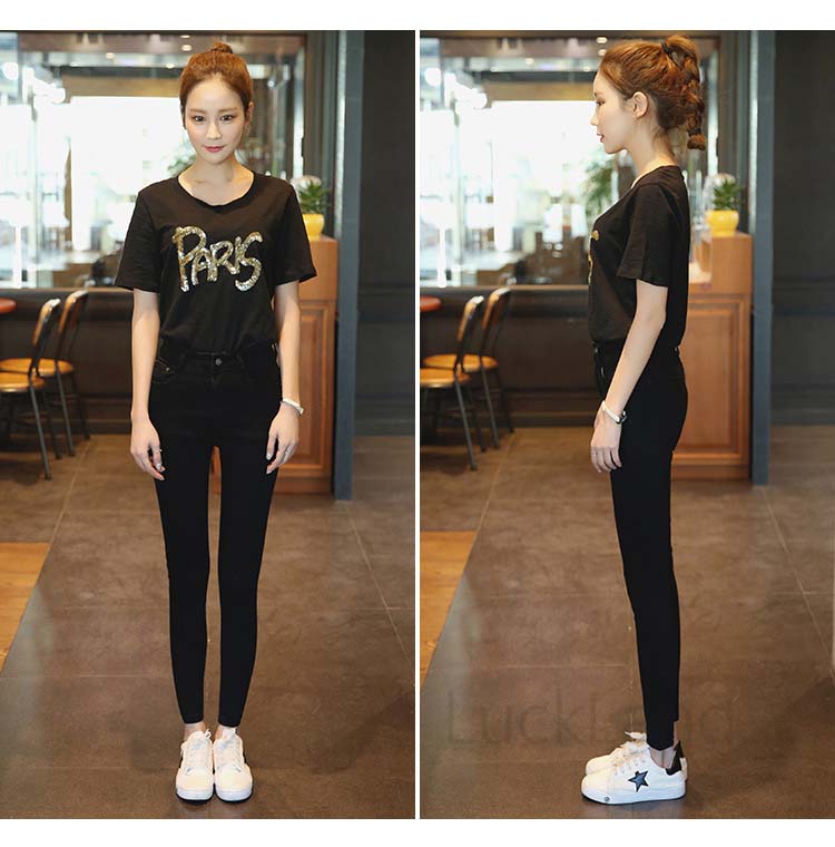 デニムパンツ ビジュー付き