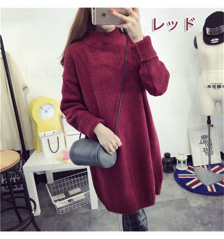 ニットワンピース ロング ハイネック