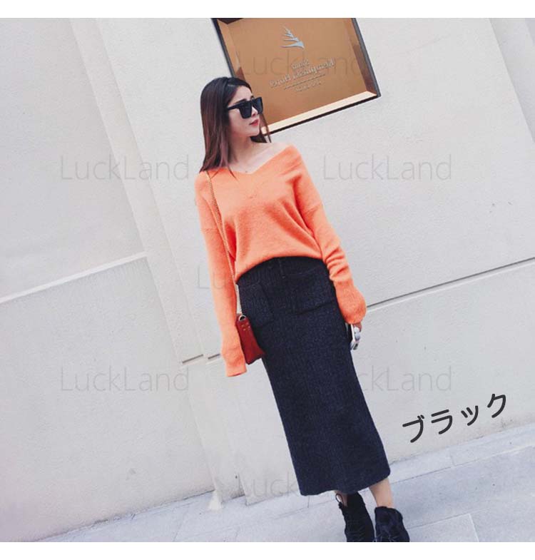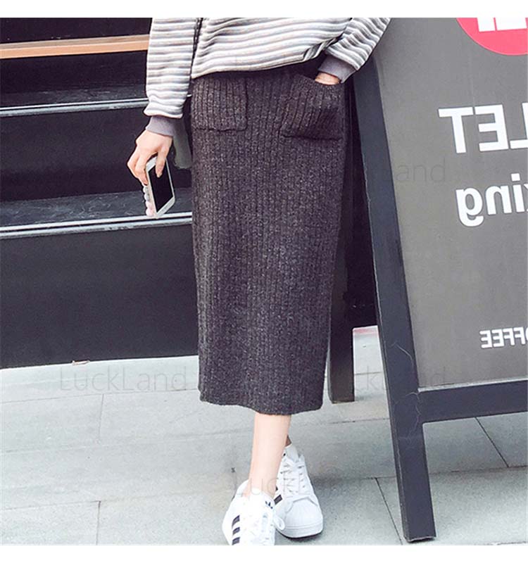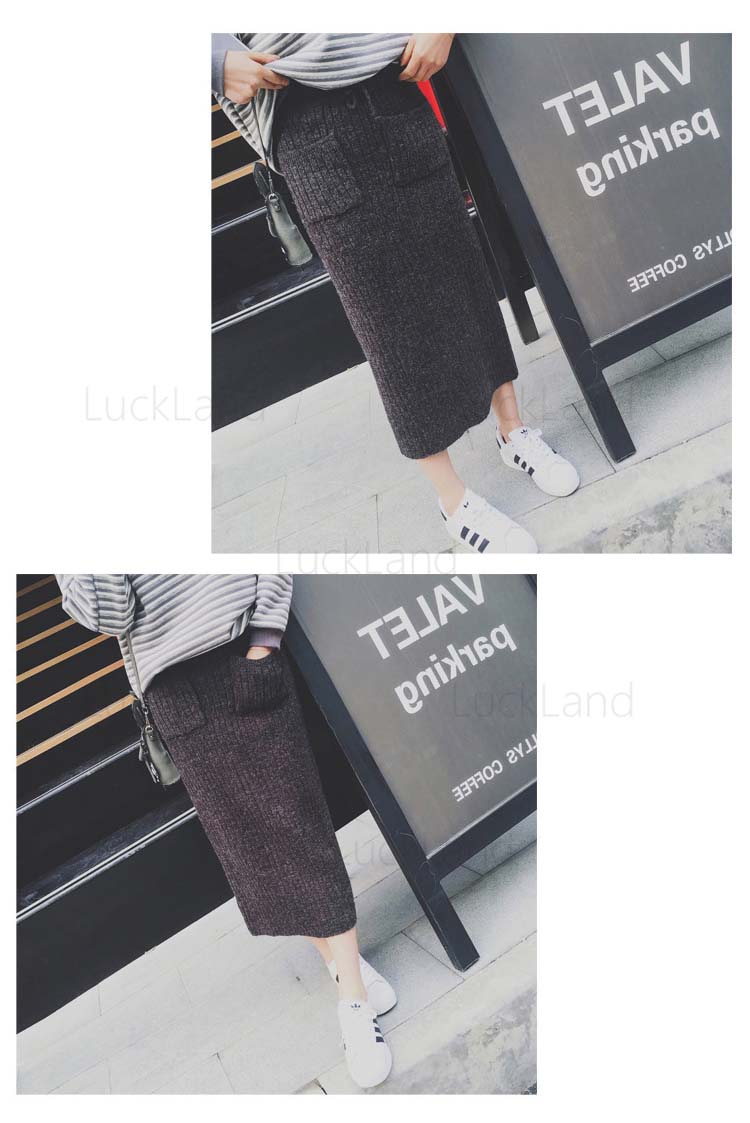 ニットスカート ロング ポケット付き