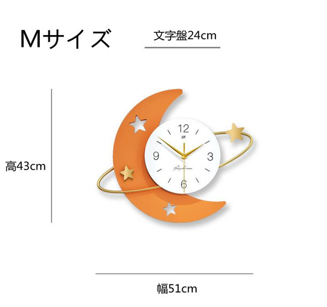 壁掛け時計 月円型オレンジナチュラル