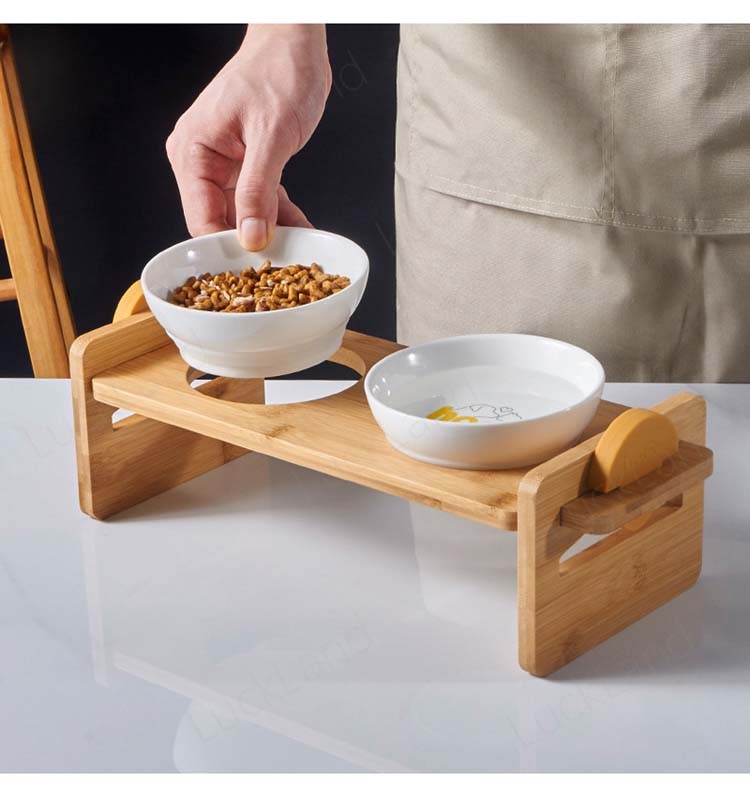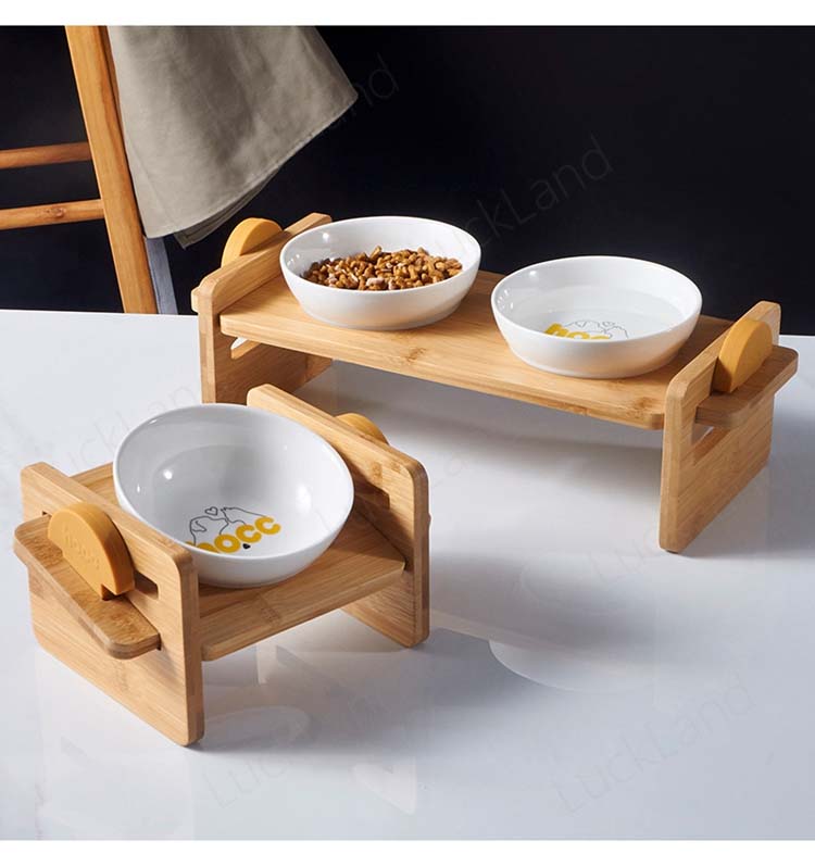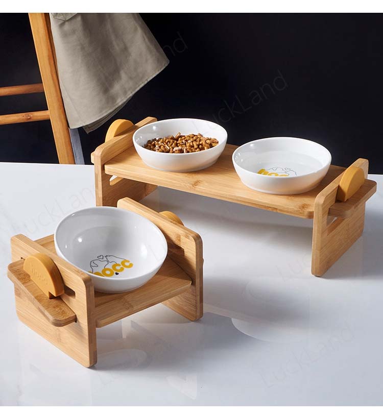 犬用 猫用 食器台 給食台 フードボウル 犬 猫 高さ調節可能 竹製 ペット 食器 台 皿 餌入れ エサ入れ 水入れ 犬猫兼用 2個セット 可愛い 老犬 老猫 首 腰 守る ペット用品