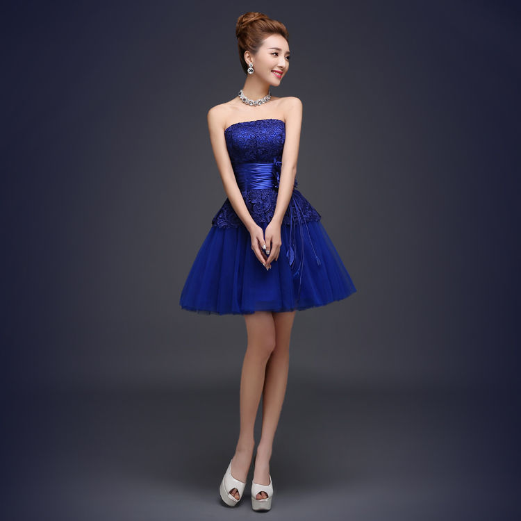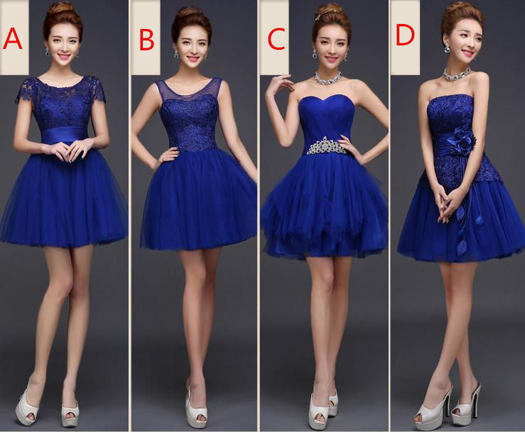 4タイプブルーミニドレスミニ丈ブライズメイドドレス ワンピース パーテイードレスショート丈 二次会 演奏会 披露宴 結婚式 発表会花柄お花嫁の介添え