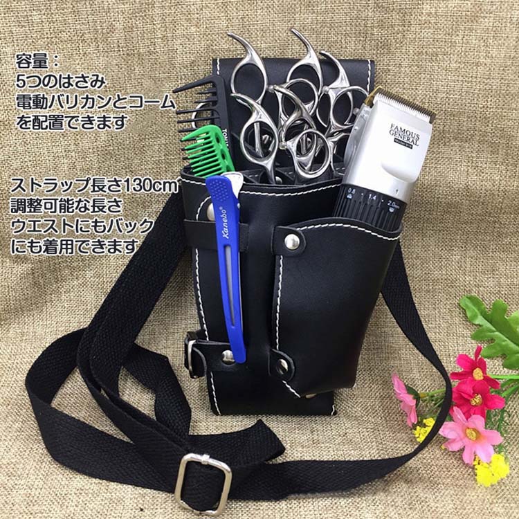 シザーケース 美容師 5丁入 レギュラータイプ PUレザー ハサミ シザー収納 トリマーフローリスト 散髪はさみ ケース 花屋 園芸 シンプル 業務用 理容師 7 Colors おしゃれ