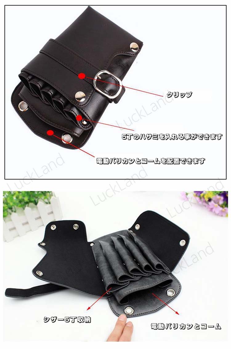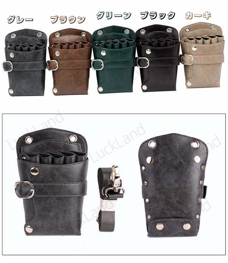 シザーケース 美容師 5丁入 収納 PUレザー 理髪師 ハサミ 理容師 トリマー フラワーショップ 花屋 ケース ウエストポーチ 腰掛け ベルト付 タイプ 腰シザーケースポケット 軽量