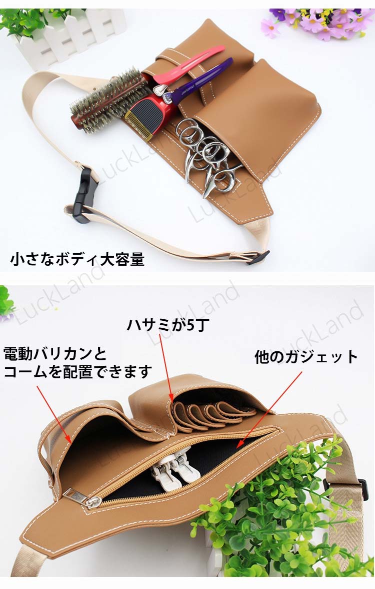 シザーケース 美容師 5丁 多機能 プロ用 床屋 理容師 理髪師 シザーバッグ ハサミ PUレザーバッグ トリマー用 サロン ベルトポーチ 仕事 ベルト付 プロ仕様 メンズ レディース