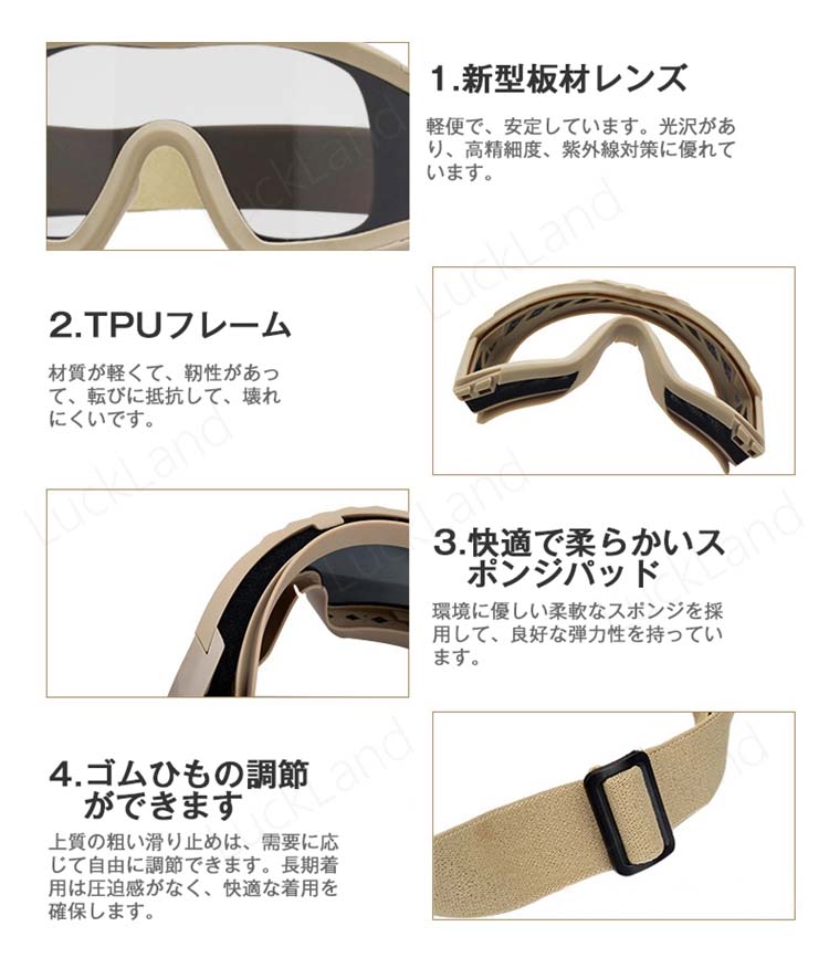 タクティカル ゴーグル 戦術ゴーグル クリアレンズ アウトドア サバゲー装備 軍隊 防風 メガネ 耐衝撃 防曇 防砂 防雪 米国 メガネ バイク サバイバルゲーム アメリカ