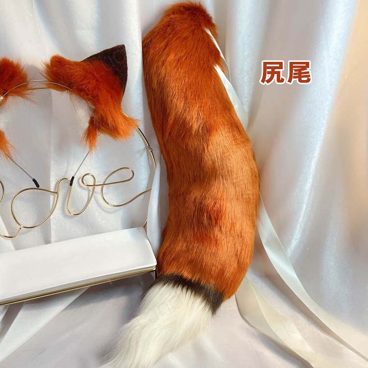 赤狐 アニマル動物 猫耳 ネコ耳 カチューシャ ふわふわ セット キッズ しっぽ 尻尾 モコモコ 仮装 変装 cosplay パーディー 文化祭 学園祭 仮装 変装 赤狐カチューシャ 偽耳 手作り
