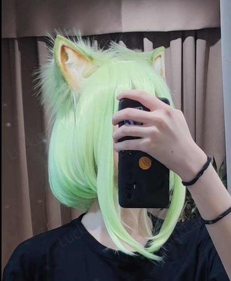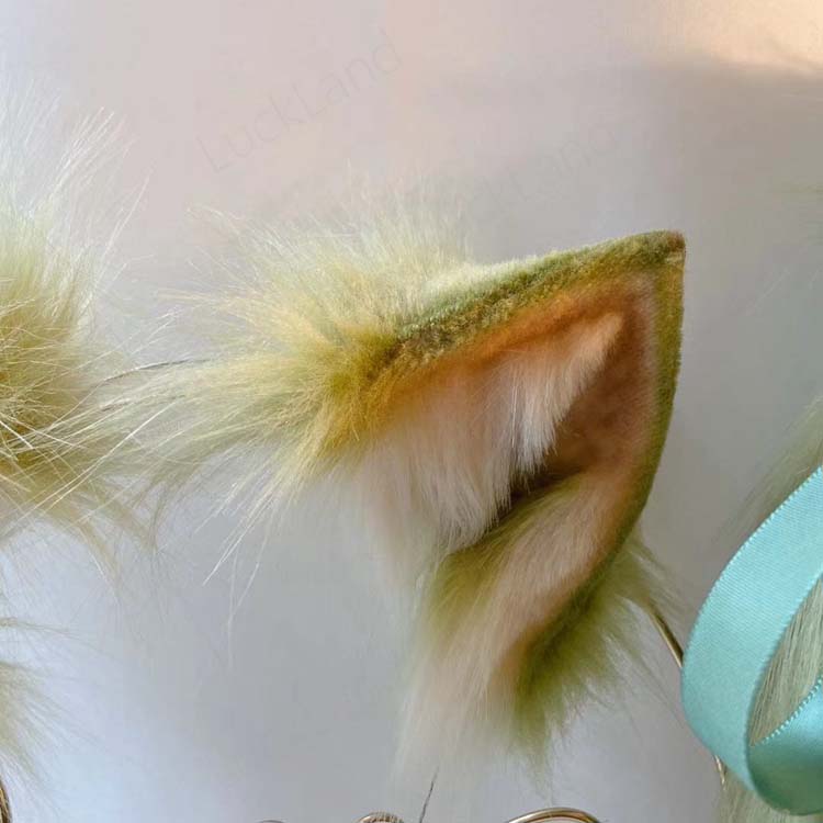 猫耳 ネコ耳 カチューシャ ふわふわ セット キッズ しっぽ 尻尾 大人 抹茶色 緑 グリーン 偽耳 偽尻尾 偽しっぽ リボン飾り コスプレ ハロウイン コスプレ道具 文化祭 学園祭 変装
