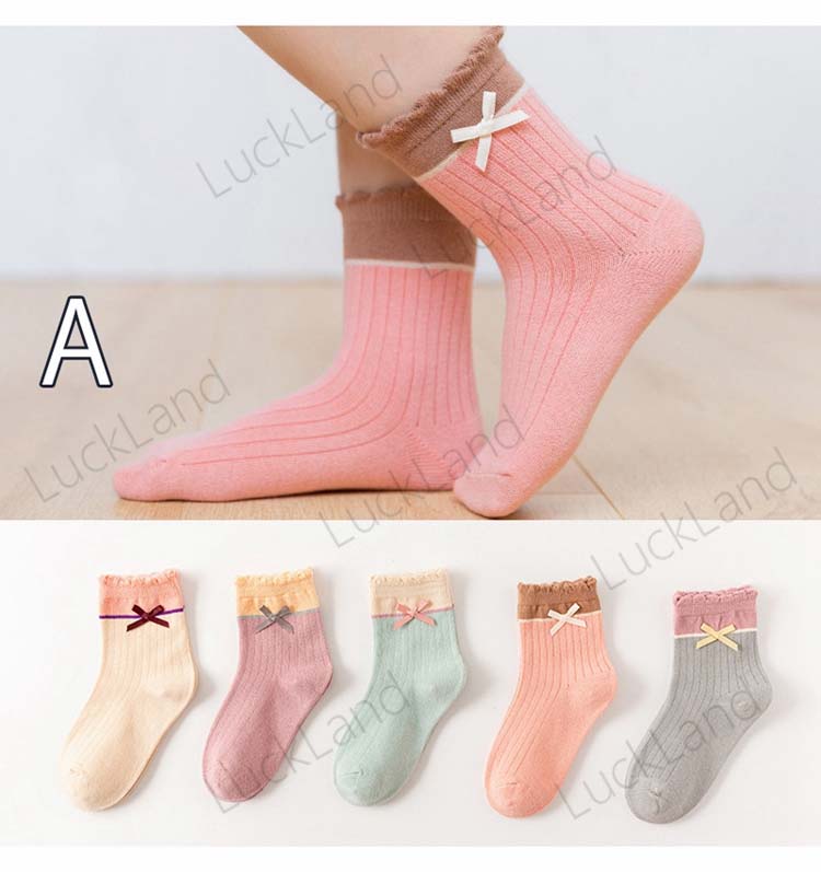 靴下 ベビー 5足組 ショートソックス 女の子 赤ちゃん 子供用 ガールズ アンクルソックス レース ちょう結び 可愛い コットン キッズ 幼児 ソックス 児童 おしゃれ
