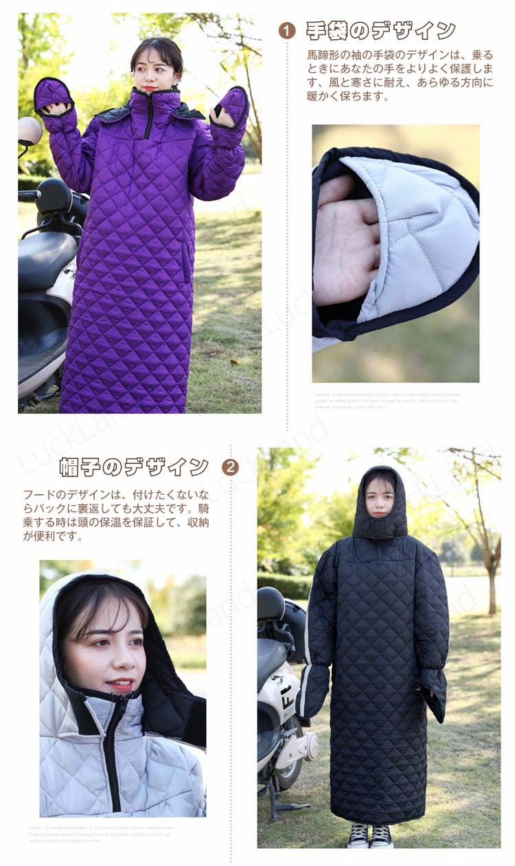 バイク スクーター 専用 男女兼用 レッグカバー オートバイ専用 バイク用 レッグカバー ホットレッグシールド 中綿 ロング丈 ポケット付き 全方位 中綿 フード 保温 防雪 防水 防風