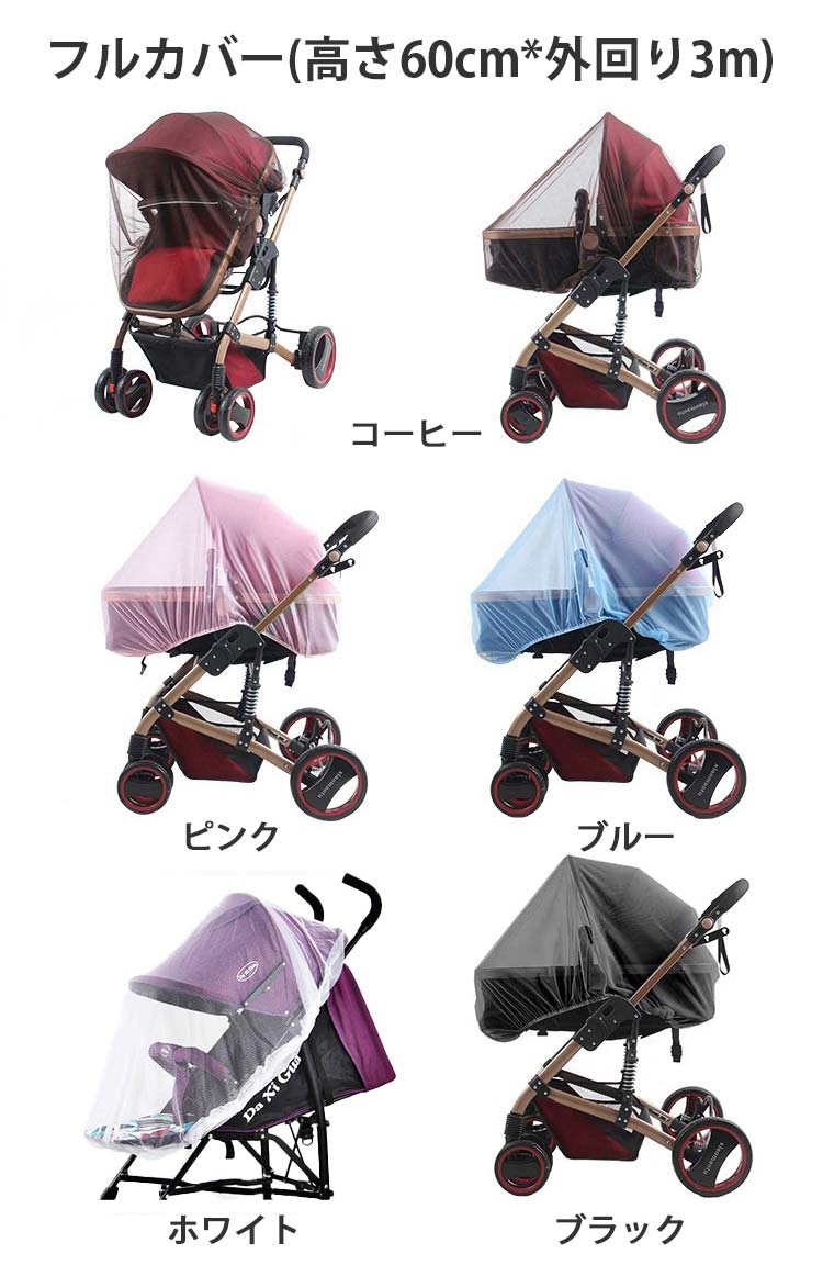 ベビーカー 蚊帳 ベビー用品 無地 シンプル ベビーカー通用 モスキートネット 多色選べる コーヒー色 ブルー ピンク フルカバー 2tpye ハーフカバー 防蚊 防虫 防害虫
