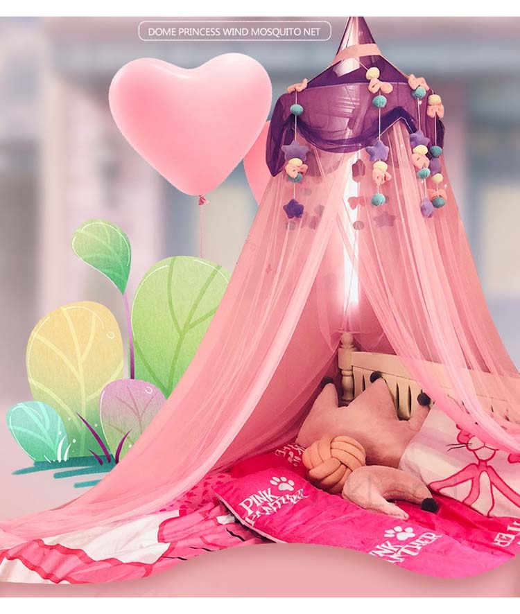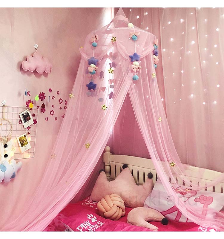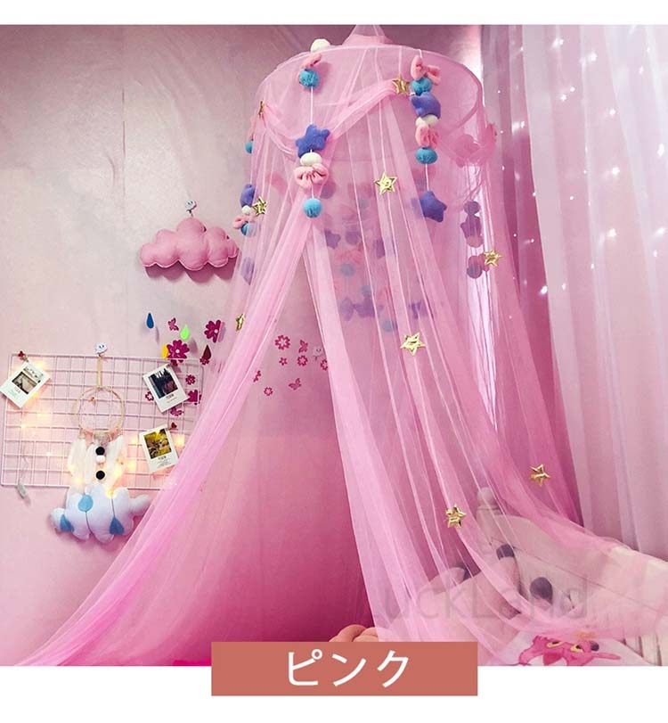 蚊帳 モスキートネット インテリア スリーピングカーテン ベビー用品 ベット帳 ベット飾り メッシュ キャノピー 星 リボン ボール フェルト飾り プリンセス