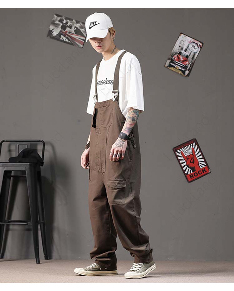 サロペットパンツ メンズ オーバーオール サロペット 無地 全2色 メンズ レディース ユニセックス ペアルック オールインワン コーヒー カーキ カップル M L XL 2XL