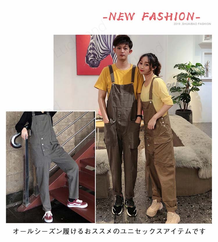 オーバーオール メンズ サロペット ユニセックス ロングパンツ おしゃれ レディース 大きいサイズ 無地 コスプレ ペア服 ペアルック 体型カバー レトロ オールインワン