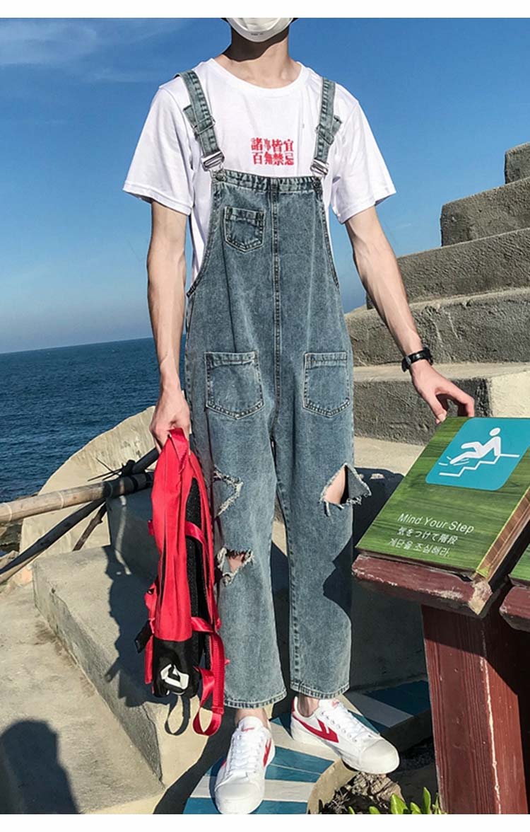 オーバーオール メンズ ジーンズ ダメージ サロペットパンツ アメカジ デニム サロペット オールインワン 9分丈パンツ ワークパンツ おしゃれ ダメージジーンズ 大きいサイズ