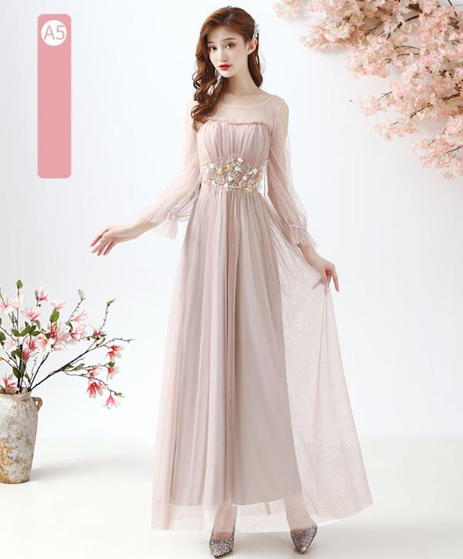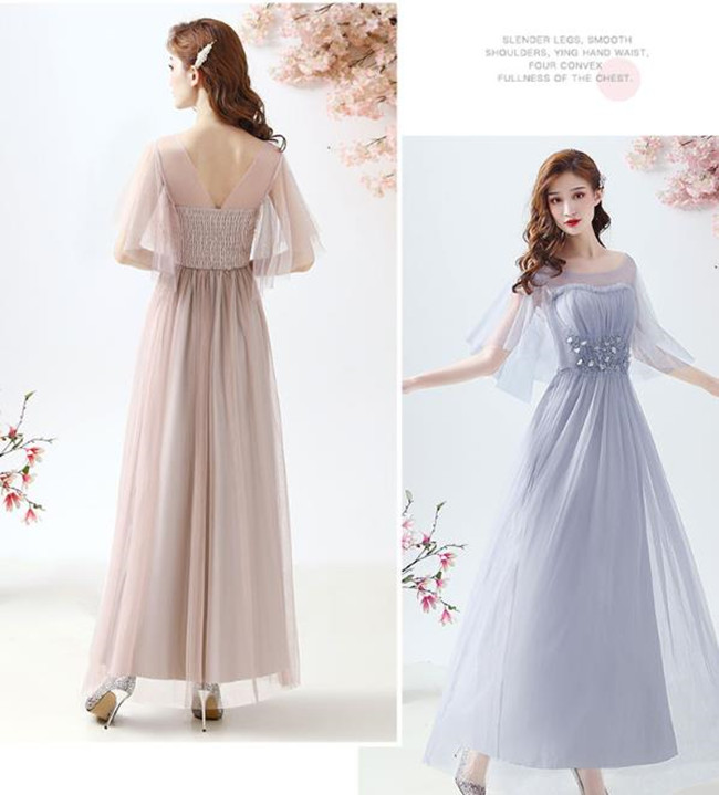 グレー 肉ピンクブライズメイドドレスパ