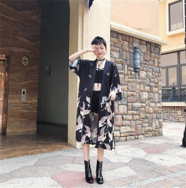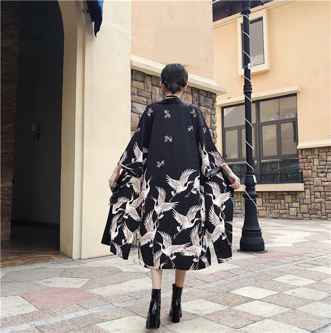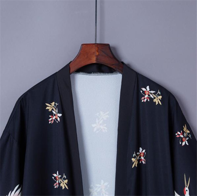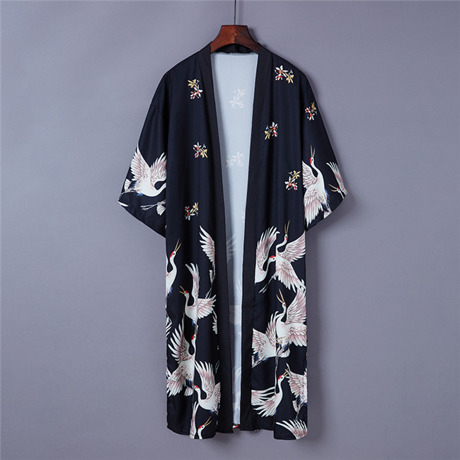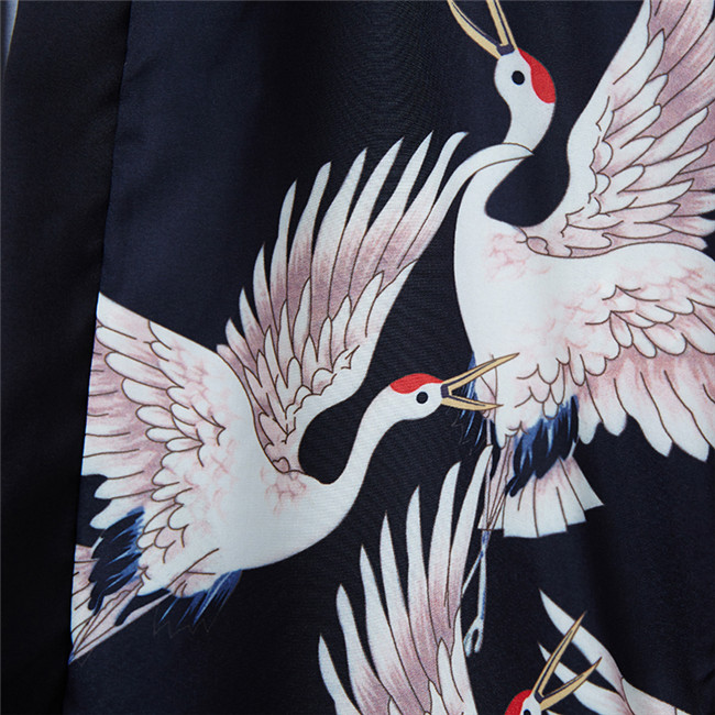 フリーサイズロング丈男女兼用 鶴柄 夏