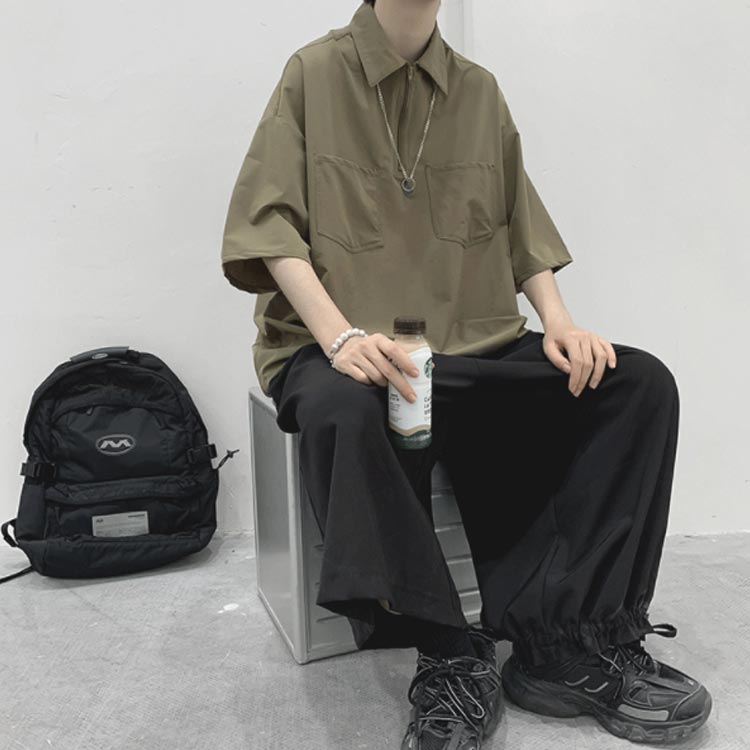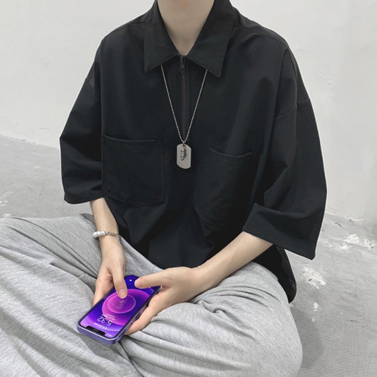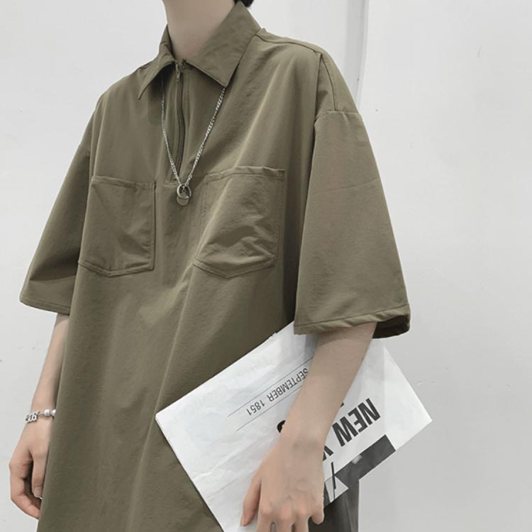 ポロシャツ tシャツ ハーフジップ 半