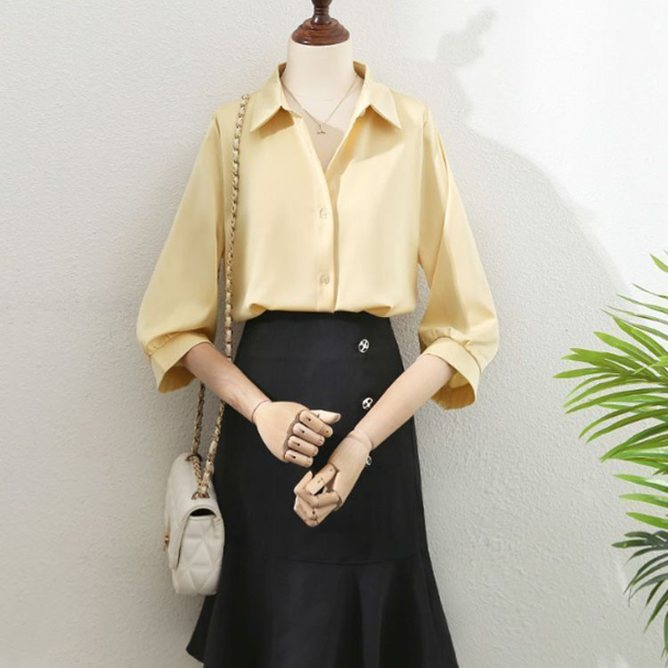 シアースリーブ ドッキングシャツ ボウタイシャツブラウス