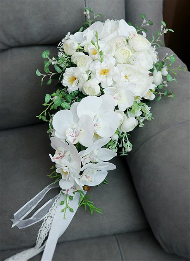 ホワイト キャスケードブーケウェディン