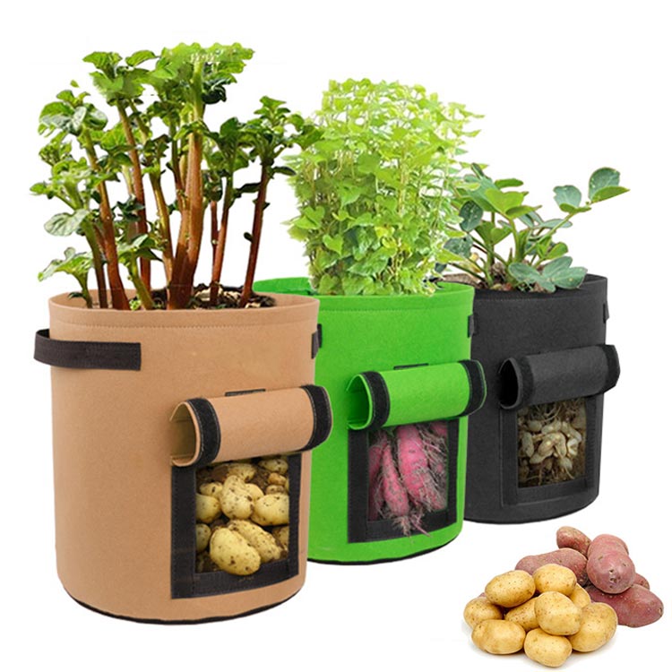 お庭の野菜つくりやベランダ菜園 ハーブ類を育てるときにを楽しめます 軽量 不織布プランター おしゃれ 鉢植え フェルト 栽培袋 持ち手付き