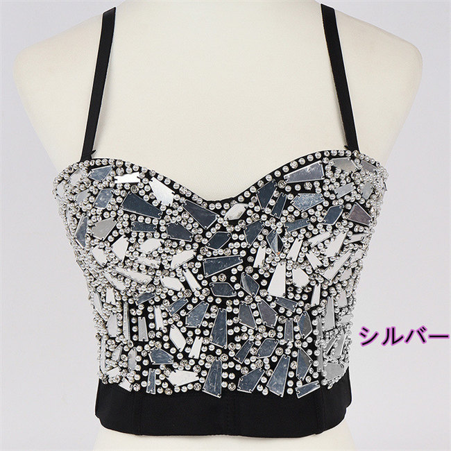 4色クリスタルキラキラチョッキインナー キャミソール キャミ チューブトップ ヘソ出しトップス ダンス衣装 練習着 ヨガウェア ショート丈 へそ出し カップなし レディース ビスチェ おしゃれ シンプ