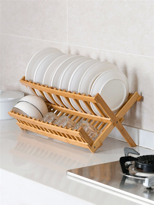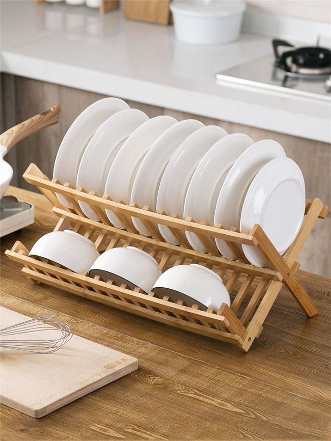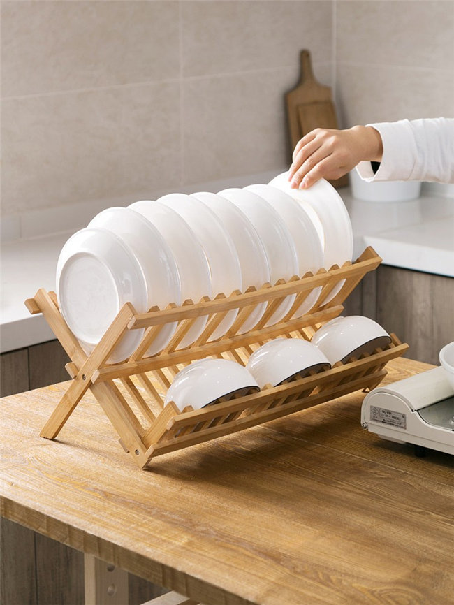 水切りラック 2段 竹製 ステンレスス