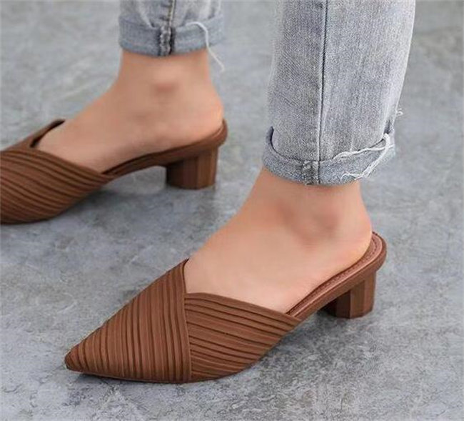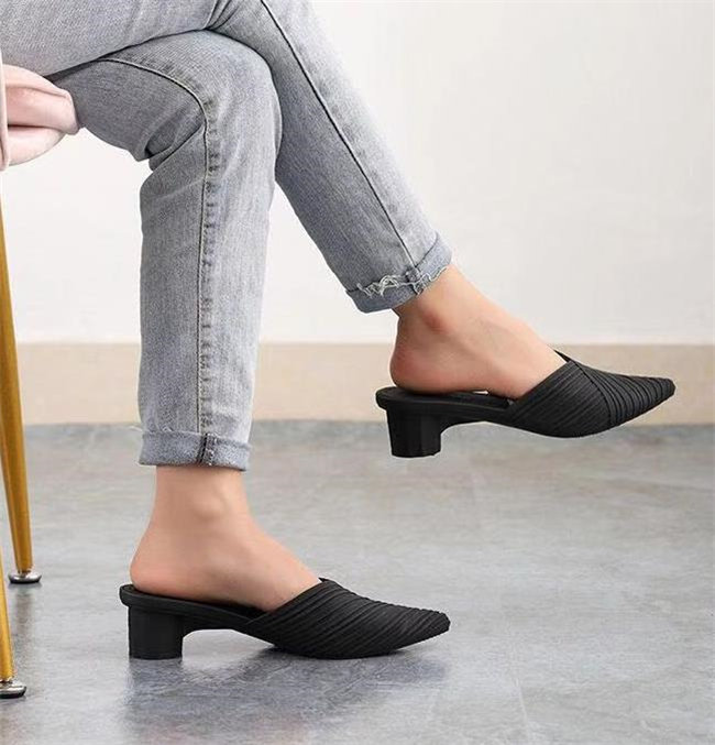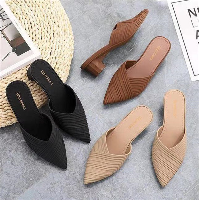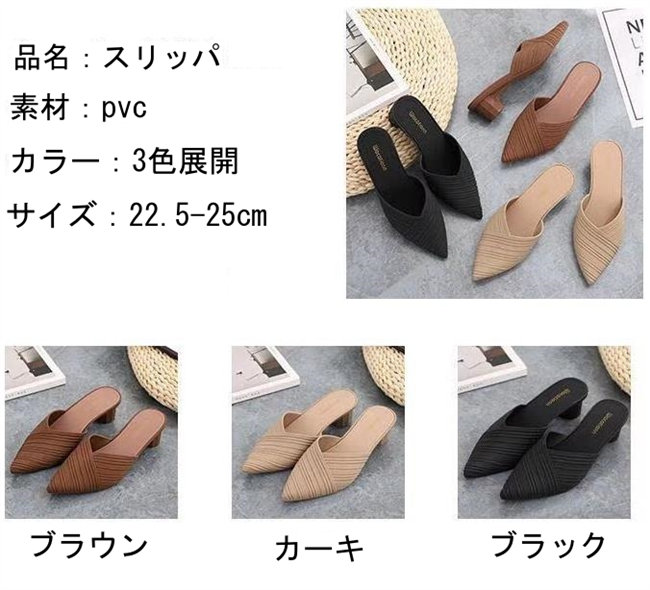 3色展開ヒール5cmミュールスリッパ