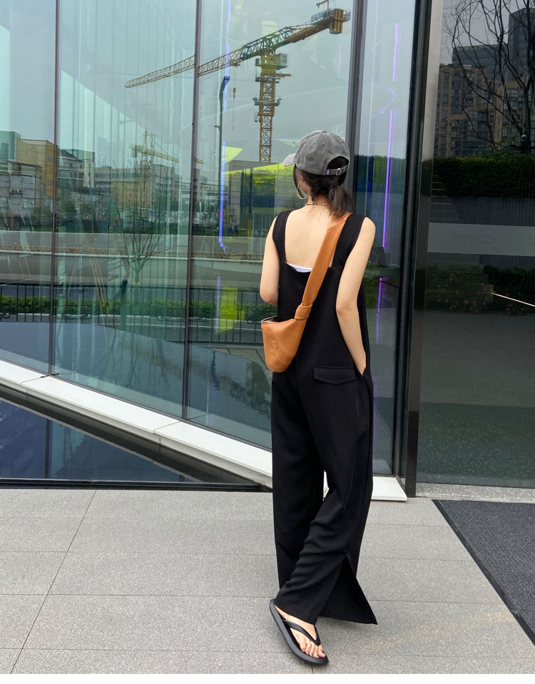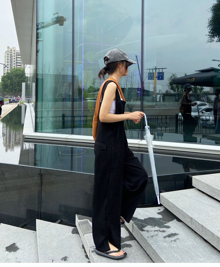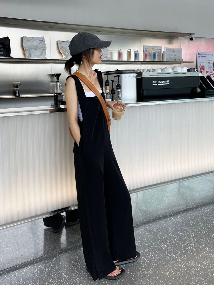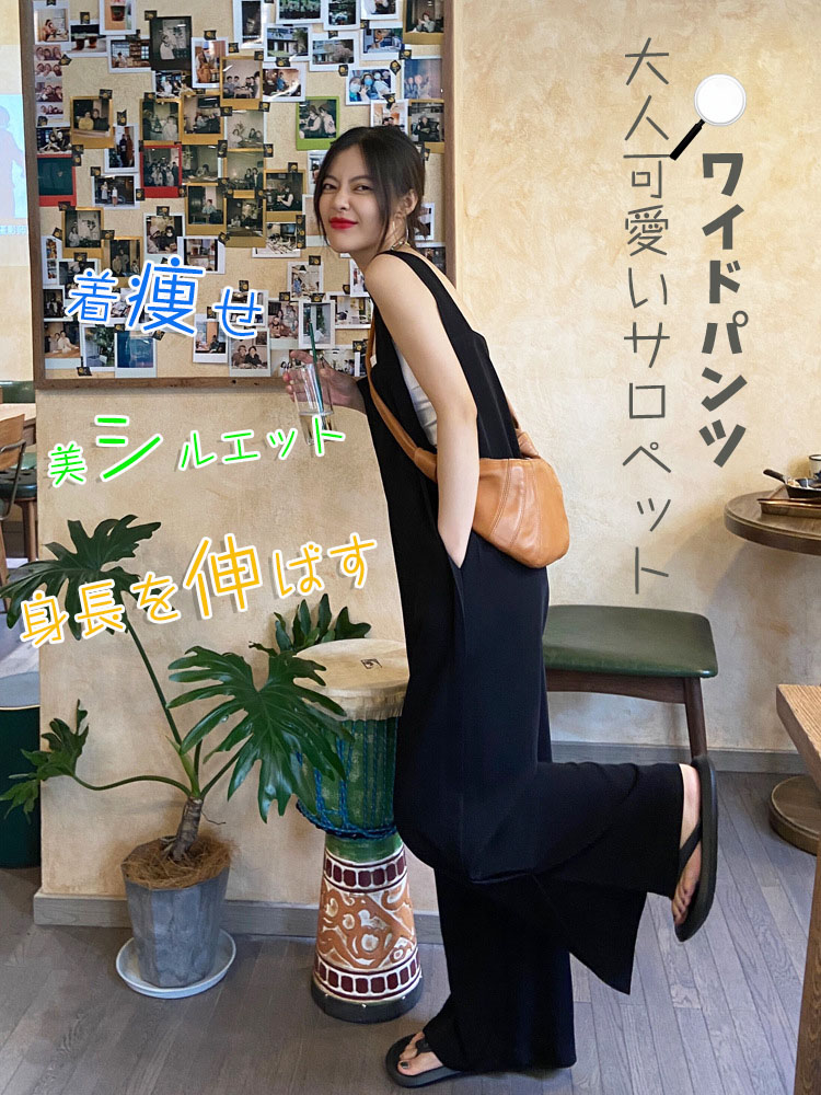 シンプルな無地!だけどシルエットにこだわった今ぽいトレンド感のゆるゆるサロペットワイドパンツ~