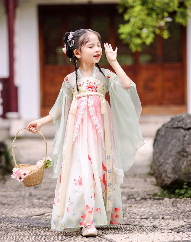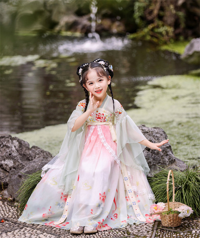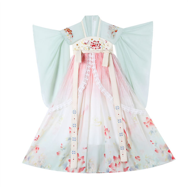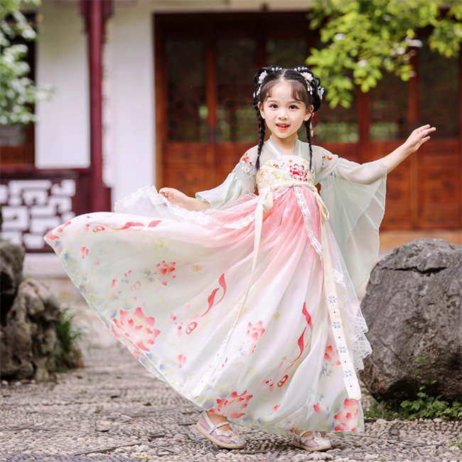 ぐりん+ピンク ワンピース 子供服 女の子 唐装漢服 キッズ 舞台演出団体服 中国古代美人服 中華風 長袖 ロング丈ワンピース ロングワンピース チャイナドレスエレガント 民族風 コスプレウェア イベ