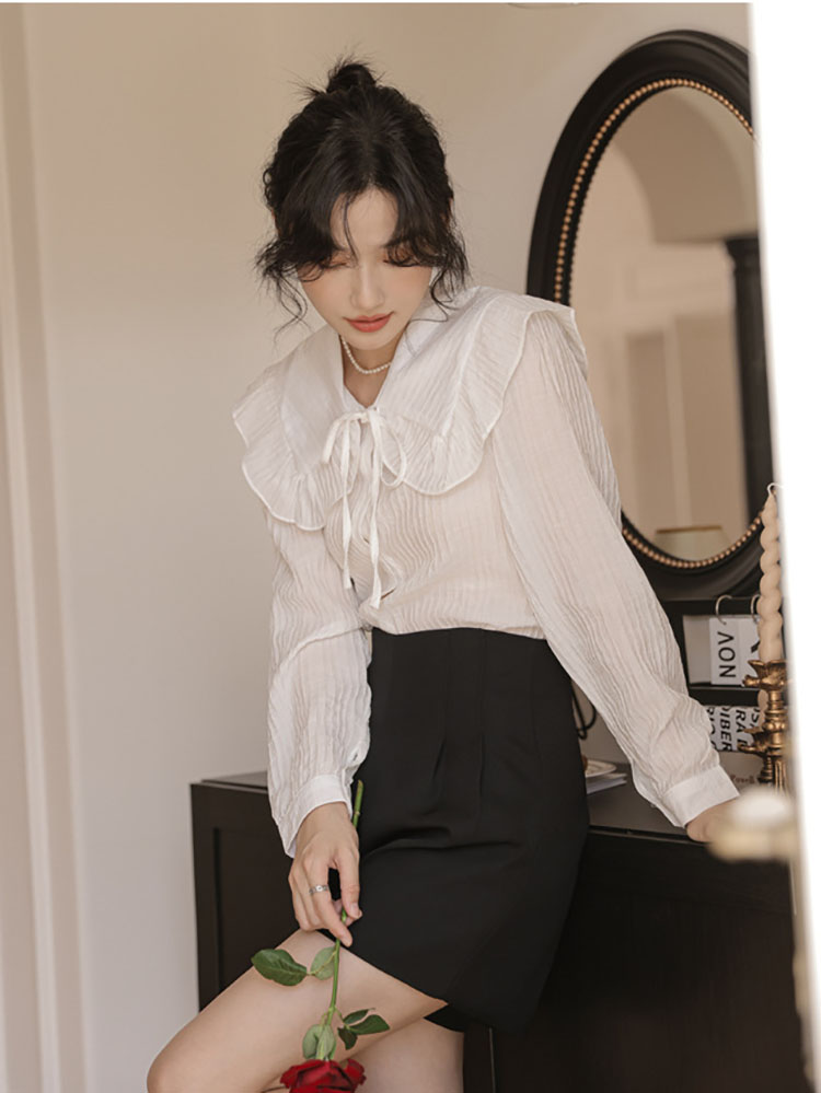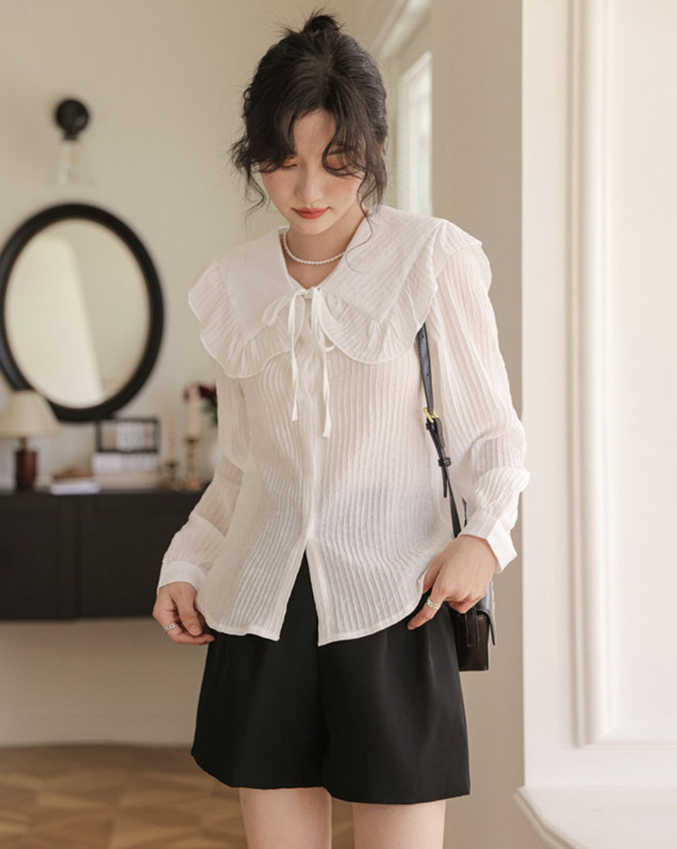 シアースリーブ ドッキングシャツ ボウタイシャツブラウス