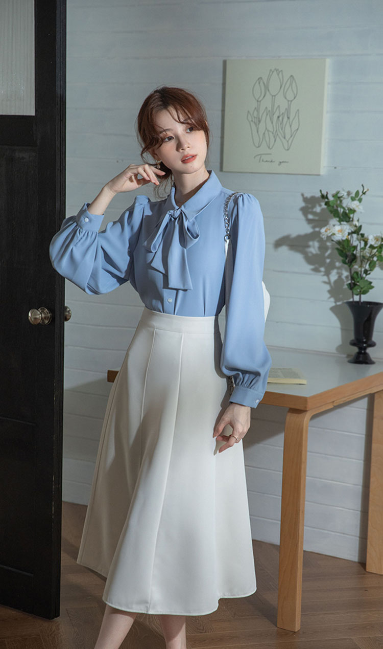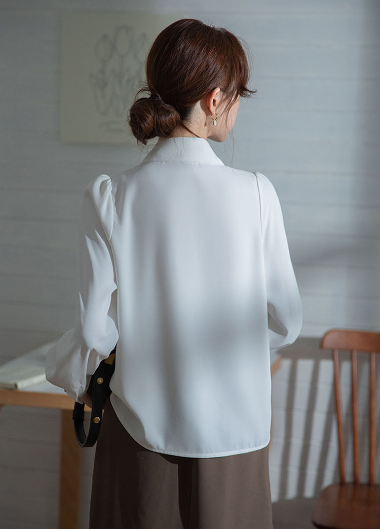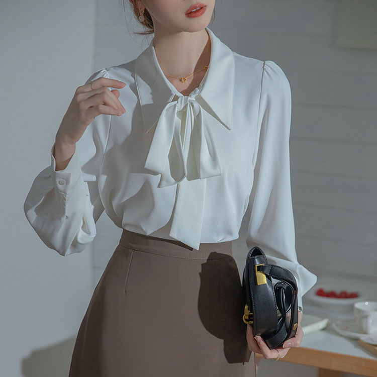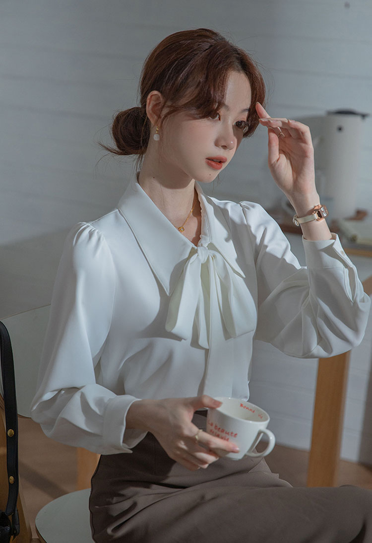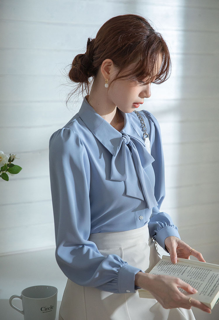 レディース ブラウス 長袖 リボン ト