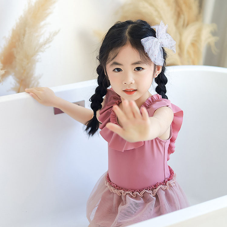 キッズ 子供 水着 女の子 ワンピース 肩フリル 長袖 90 100 110 120 130 140 ジュニア 小学生 幼稚園 女児 ガールズ 水遊び プール 海 体型カバー オシャレ 可愛い ストリ