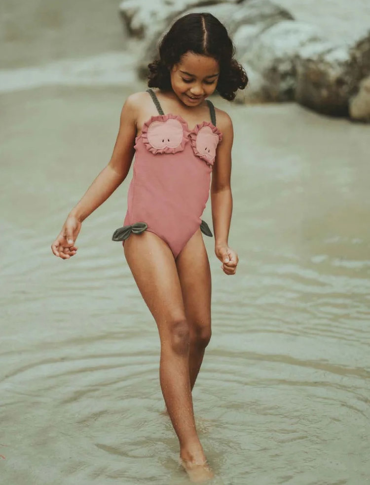 キッズ 子供 水着 女の子 ワンピース 肩フリル 長袖 90 100 110 120 130 140 ジュニア 小学生 幼稚園 女児 ガールズ 水遊び プール 海 体型カバー オシャレ 可愛い ストリ