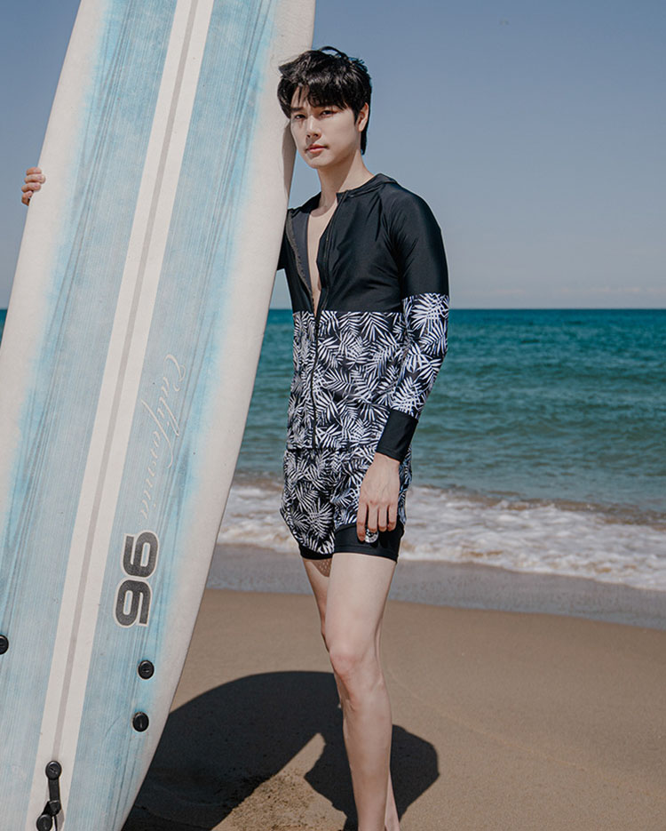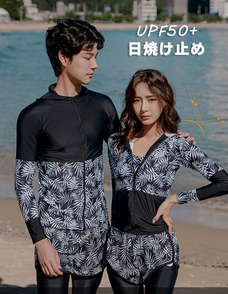 女性5点セット 男性3点セット 定番な黒白色組合 水着 レディース メンズ フィットネス 長袖 ショートパンツ セットアップ