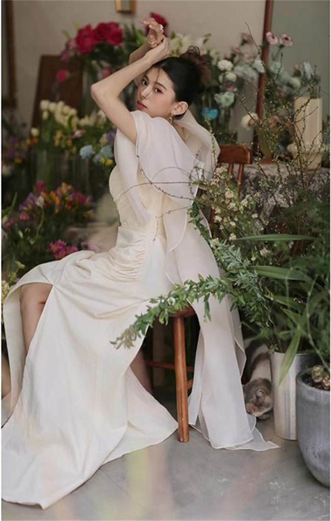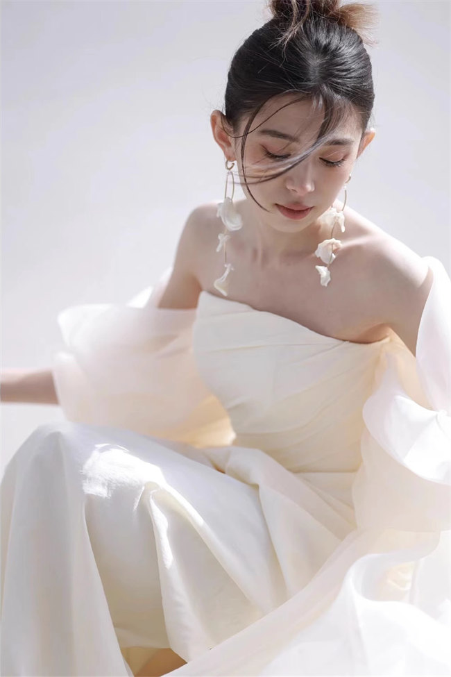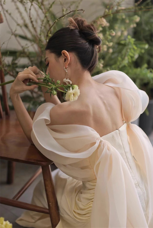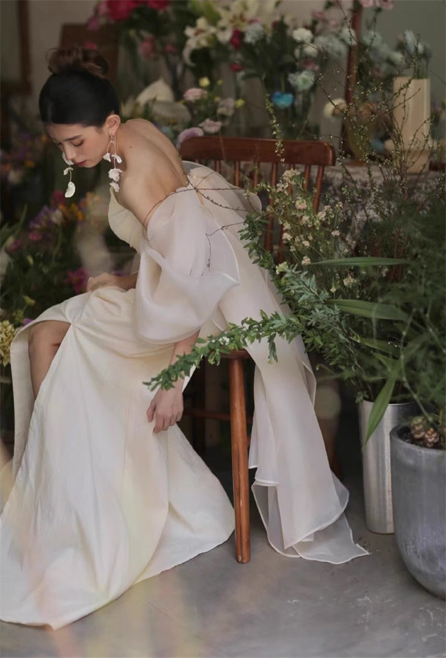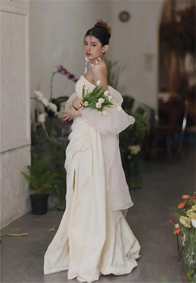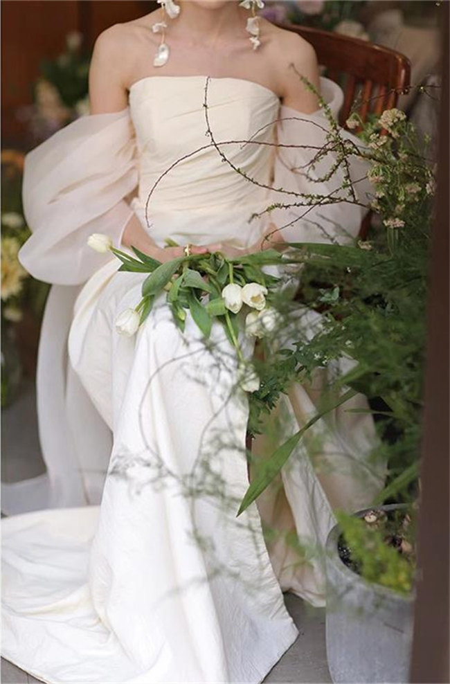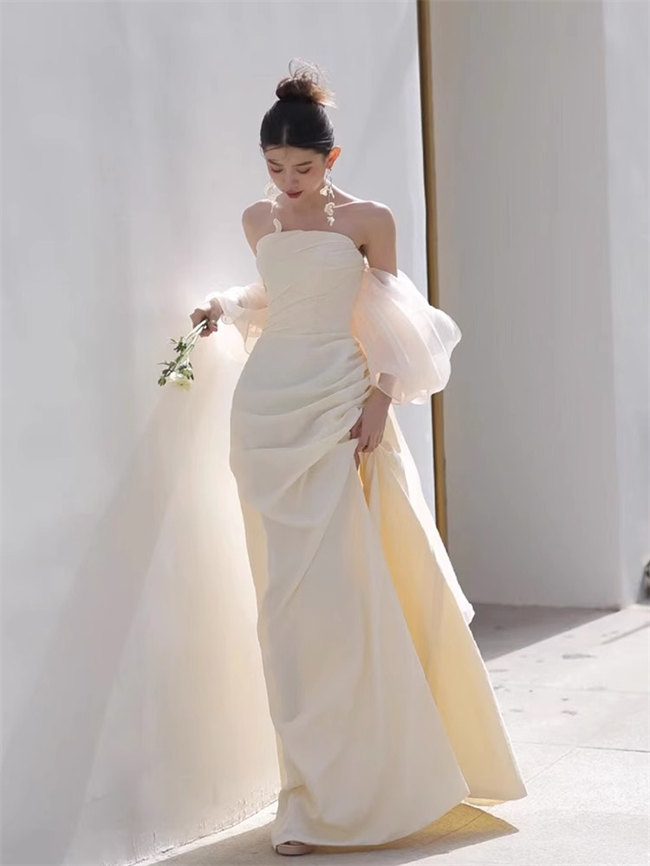 シャンパンウェディングドレスAラインビ