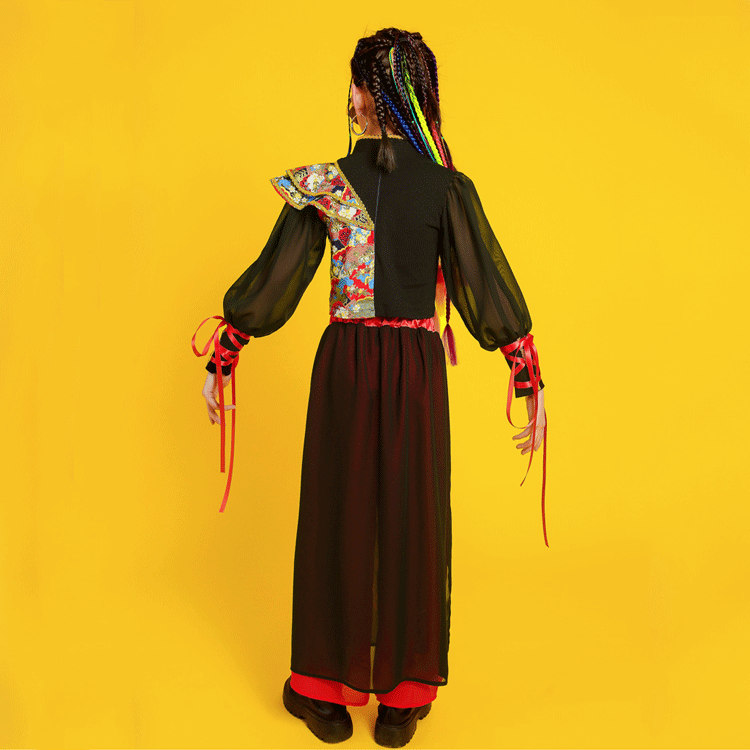 シアースリーブ ドッキングシャツ ボウタイシャツブラウス