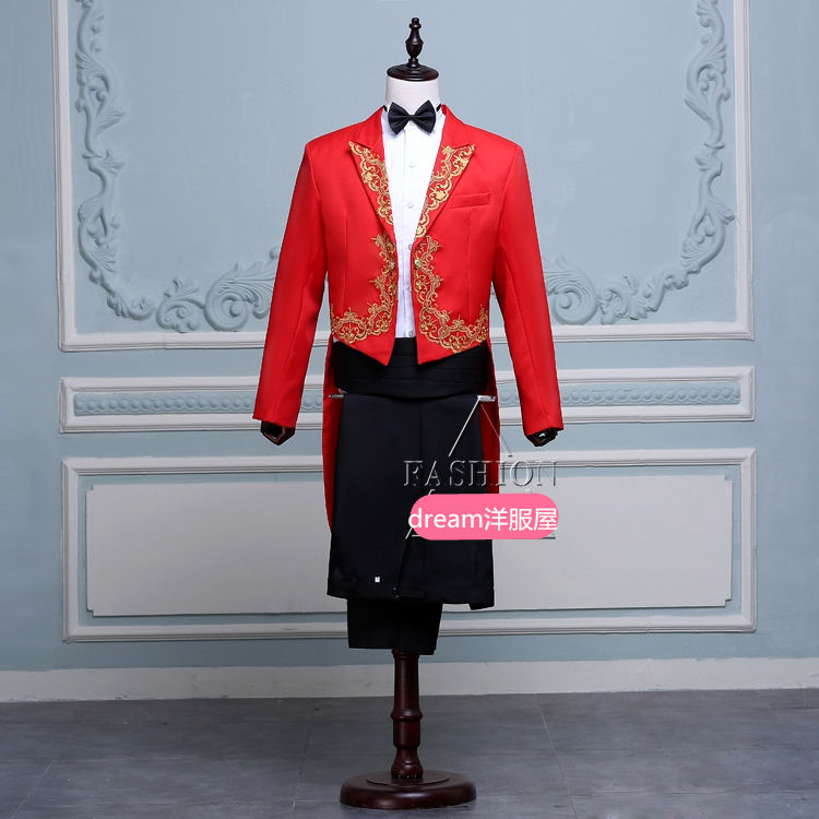 3色入荷メンズフォーマル スーツ 燕尾服結婚式 パーティ 司会スーツ ズボン 蝶タイ カマーベルトの4点セットお呼ばれ披露宴二次会