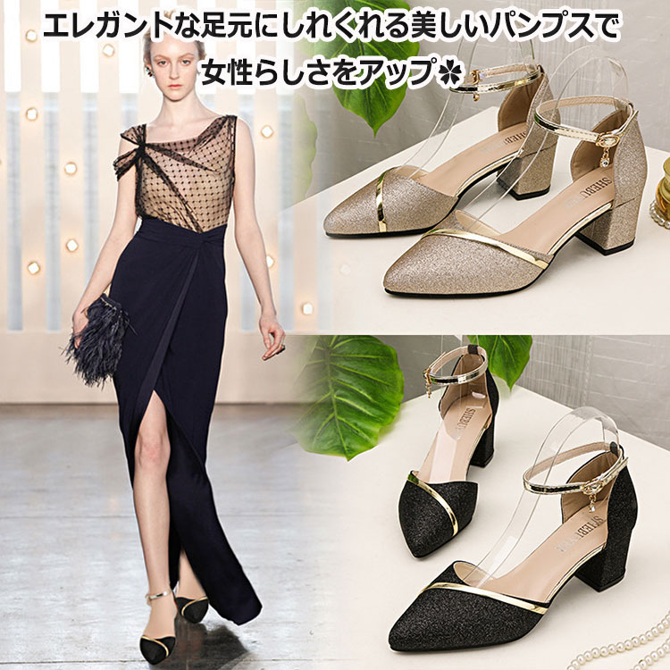 パンプス チャンキーヒール フォーマル