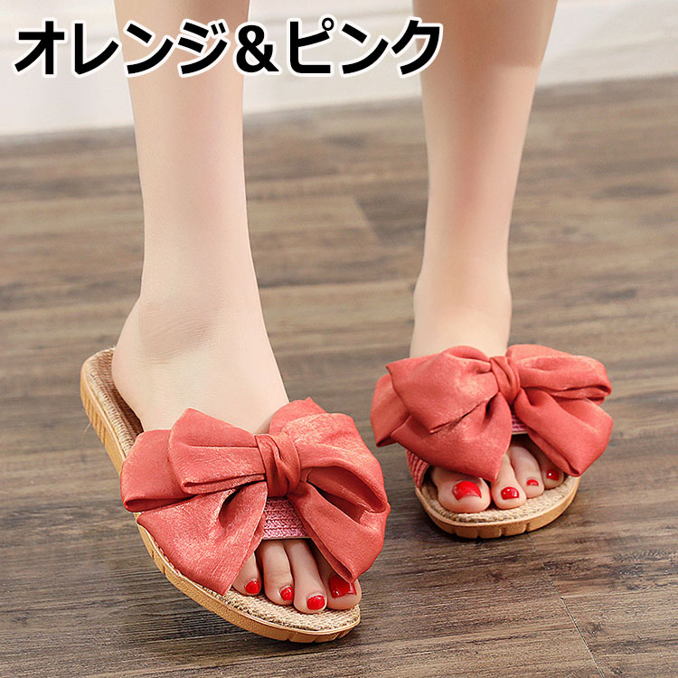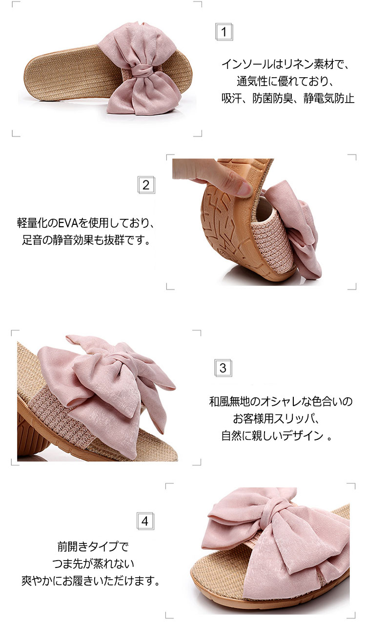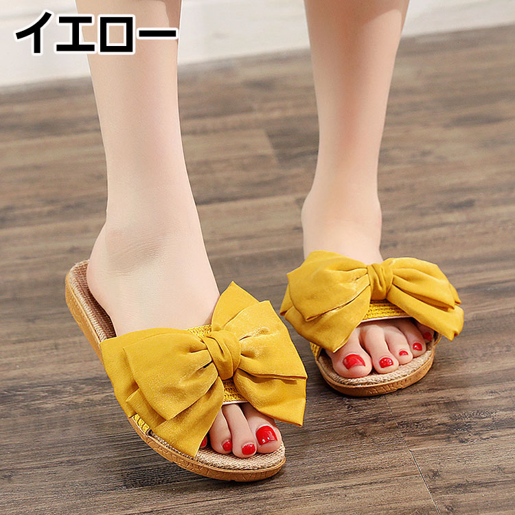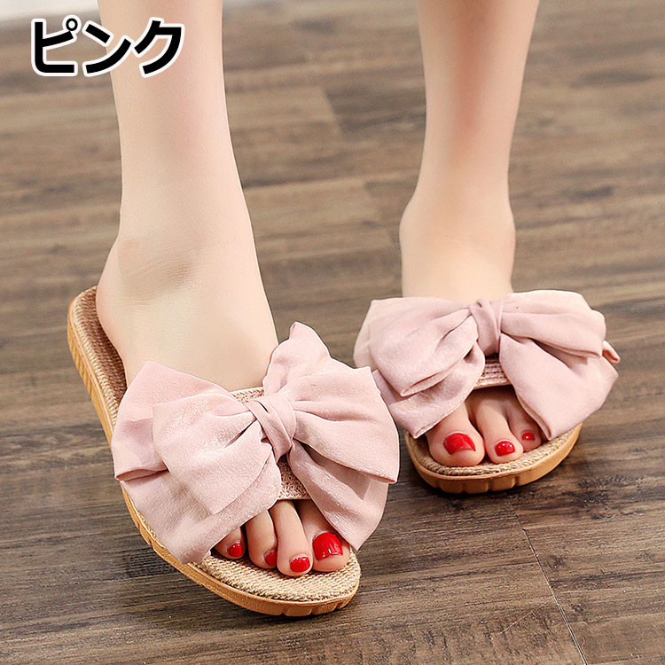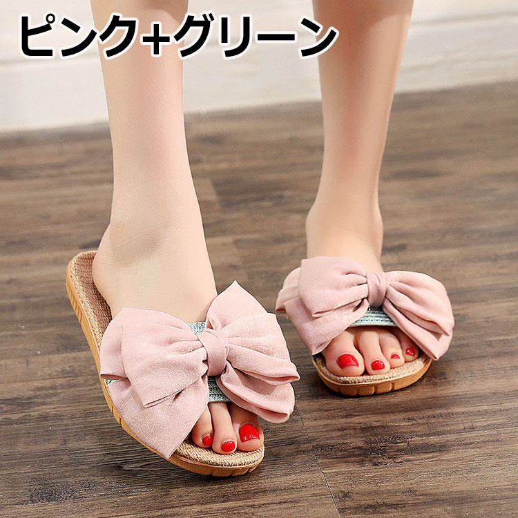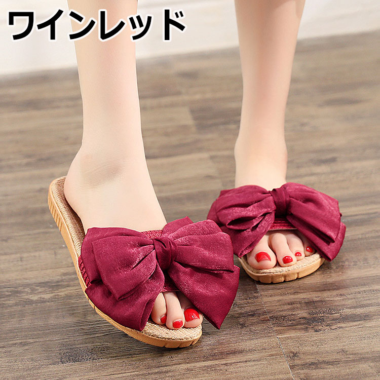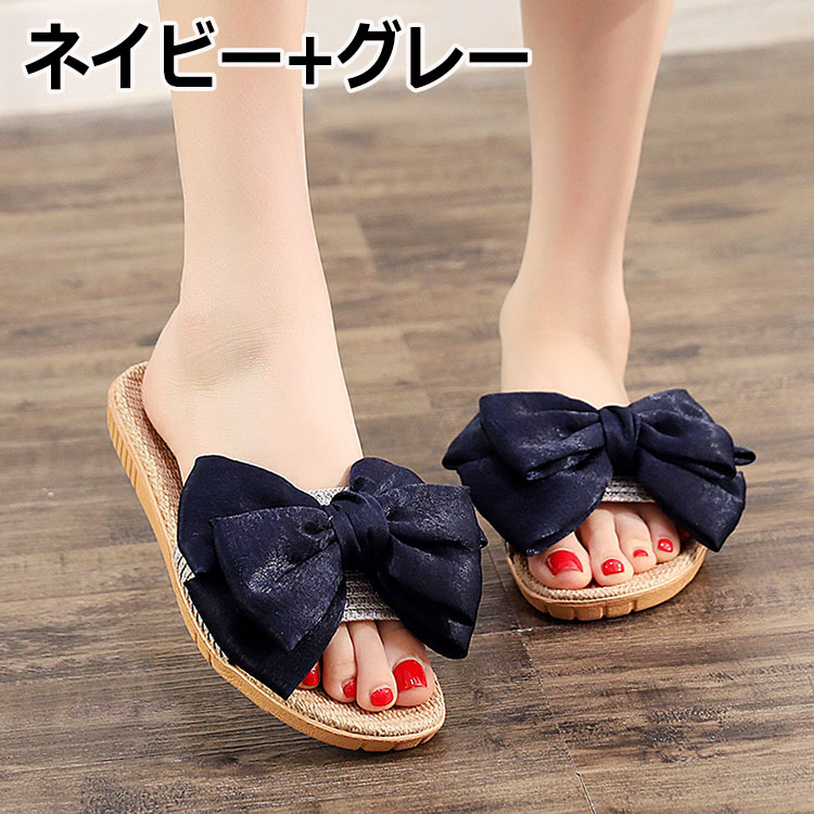 スリッパ 麻 春 夏 スリッパ リボン