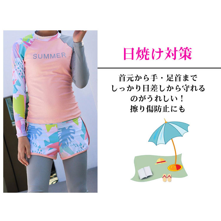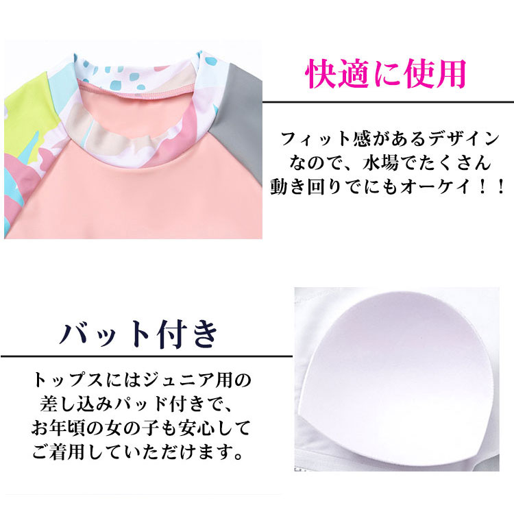 検索キーワード:水着 女の子 セパレート ラッシュガード UVカット UPF50 日焼け防止 日焼け止め スカッツ レギンス 2点セット ハイネック 長袖 長パンツ 130cm 140cm 150cm 160cm 170cm スク水 スクール水着 ジュニア 小学生 中学生 ガールズ 水遊び プール 海 夏 暑い 体型カバー オシャレ 可愛い 総柄 スイミング 練習 旅行 水遊び 小学校 中学校 ブルー ピンク