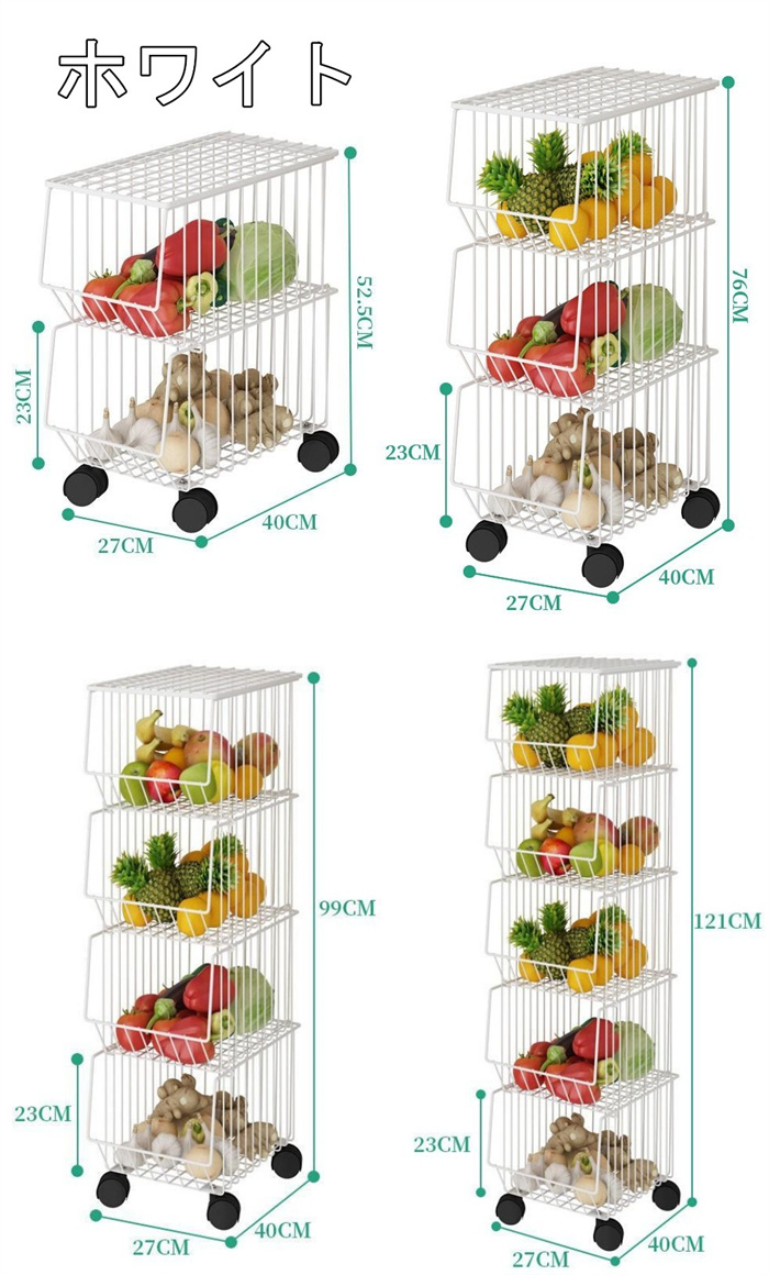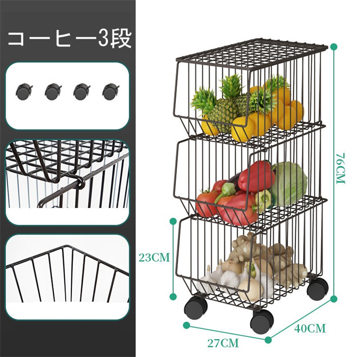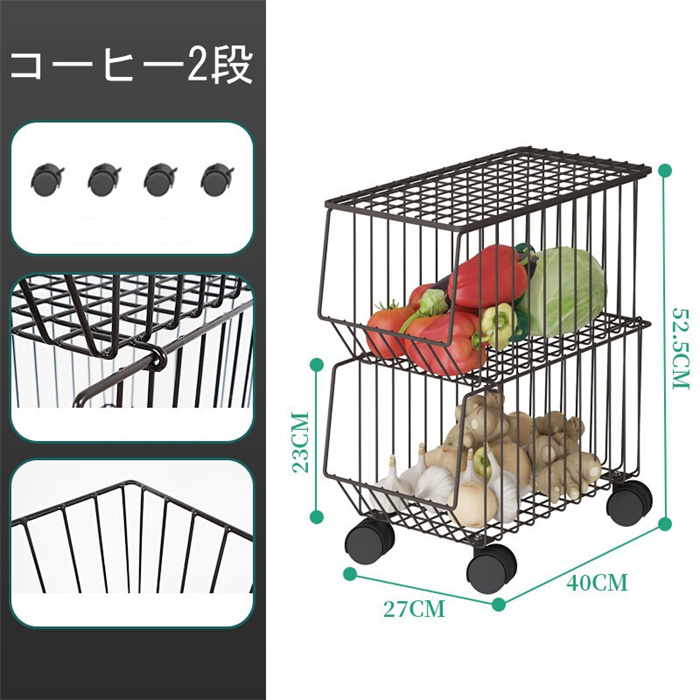 バスケットワゴン キャスター付き 多機