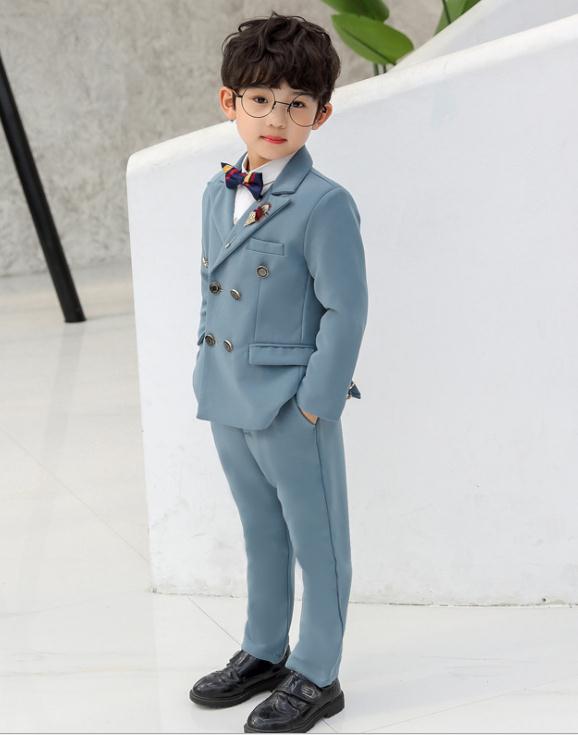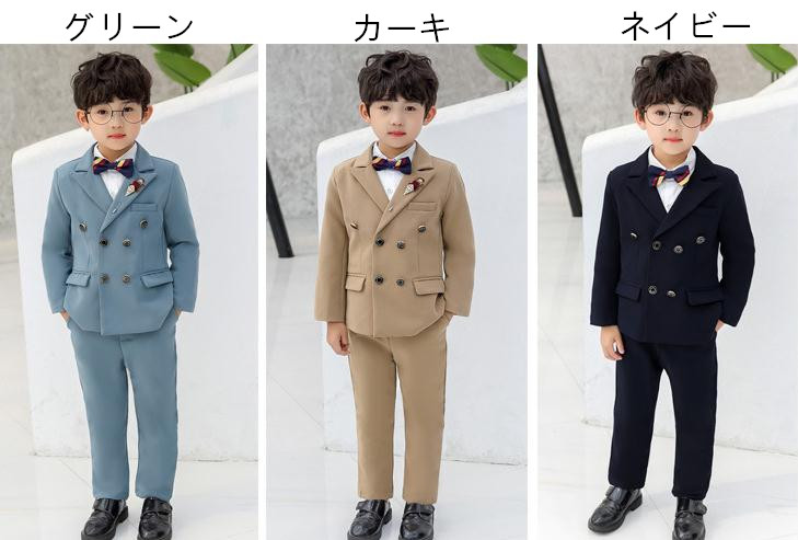 グリーン カーキ ネイビーキッズスーツセット子供スーツ キッズ服 男の子衣装ズボン、コート2点セット上下セットセットアップ演出 入園式 発表会 七五三 結婚式フォーマル80CM 90CM 100CM