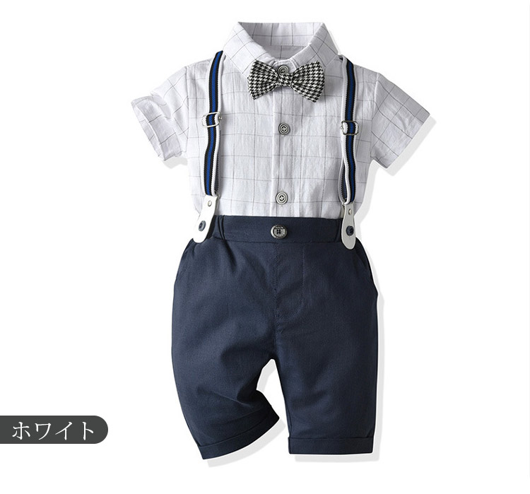 【120#】シャツ丈43cm バスト68cm ズボン丈40cm ウエスト45cmセット内容 シャツ ハーフパンツ 蝶ネクタイ注意 PC環境・光の具合により、色や素材のイメージが写真と若干異なる場合がございます。
