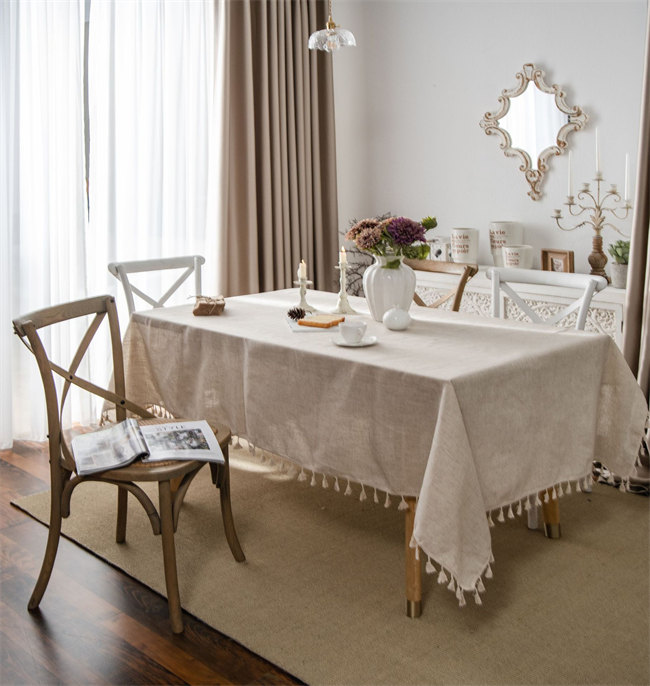 ベージュ リネン亜麻製テーブルクロス