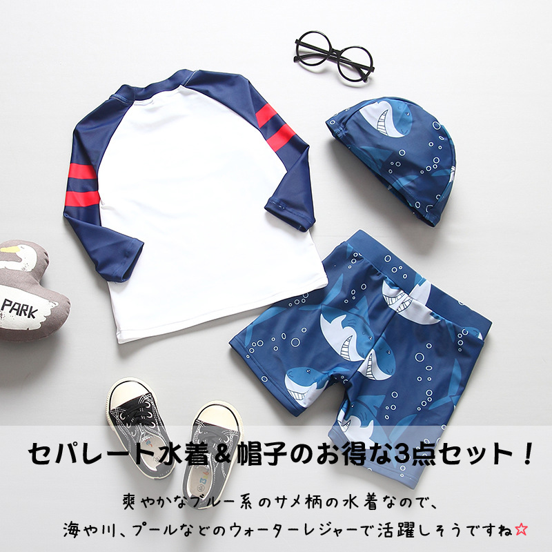 キッズ 水着 男の子 サメ柄水着 上下