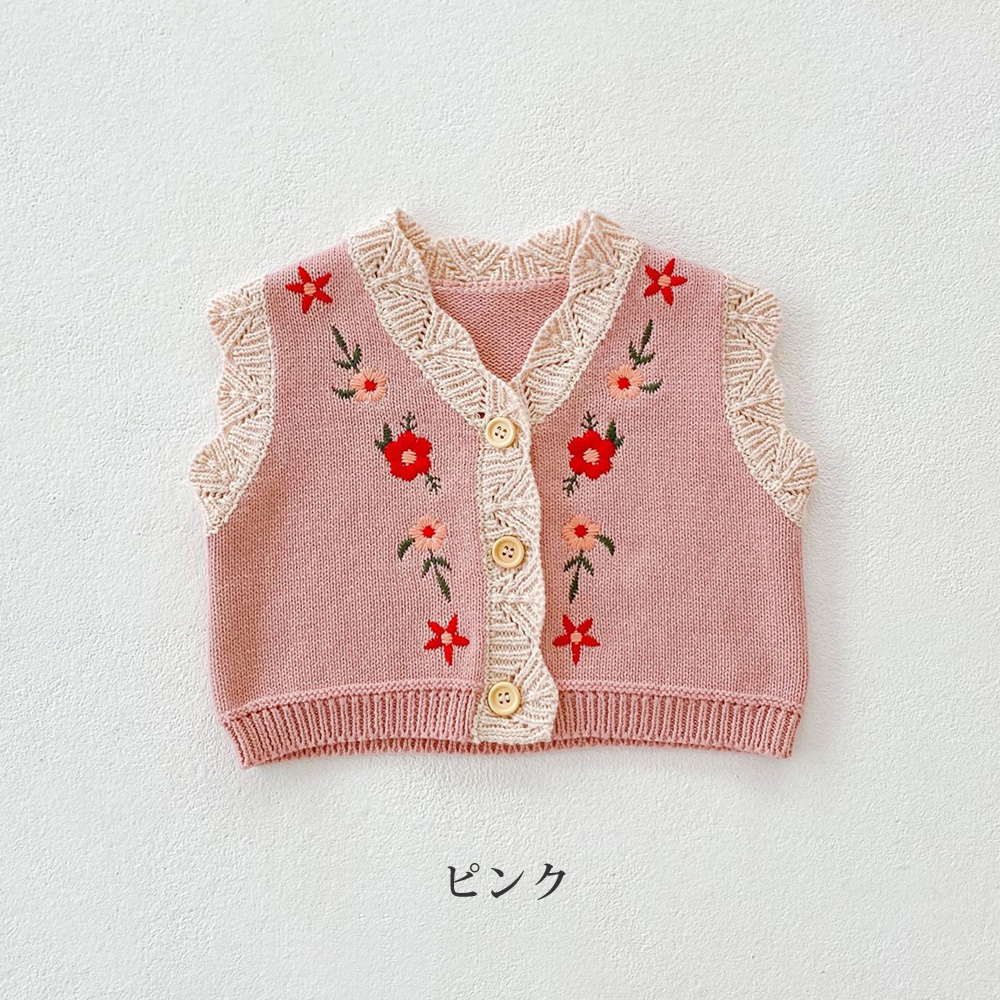 ベスト ニットのベスト 花柄 キッズ